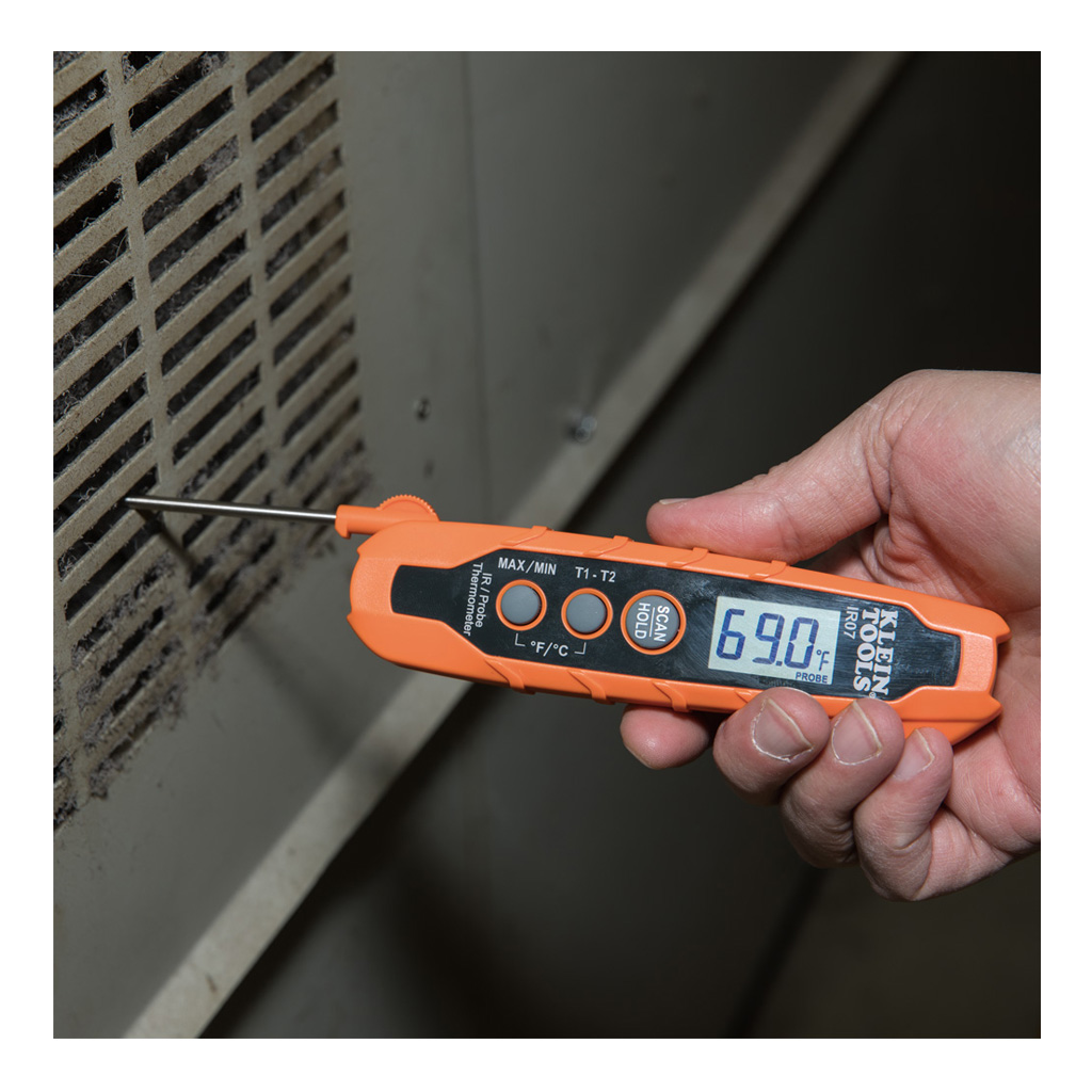 Special Features:Â Â Pocket-sized, IR and Probe Thermometer; Hanging Hook for Use with Air Vents