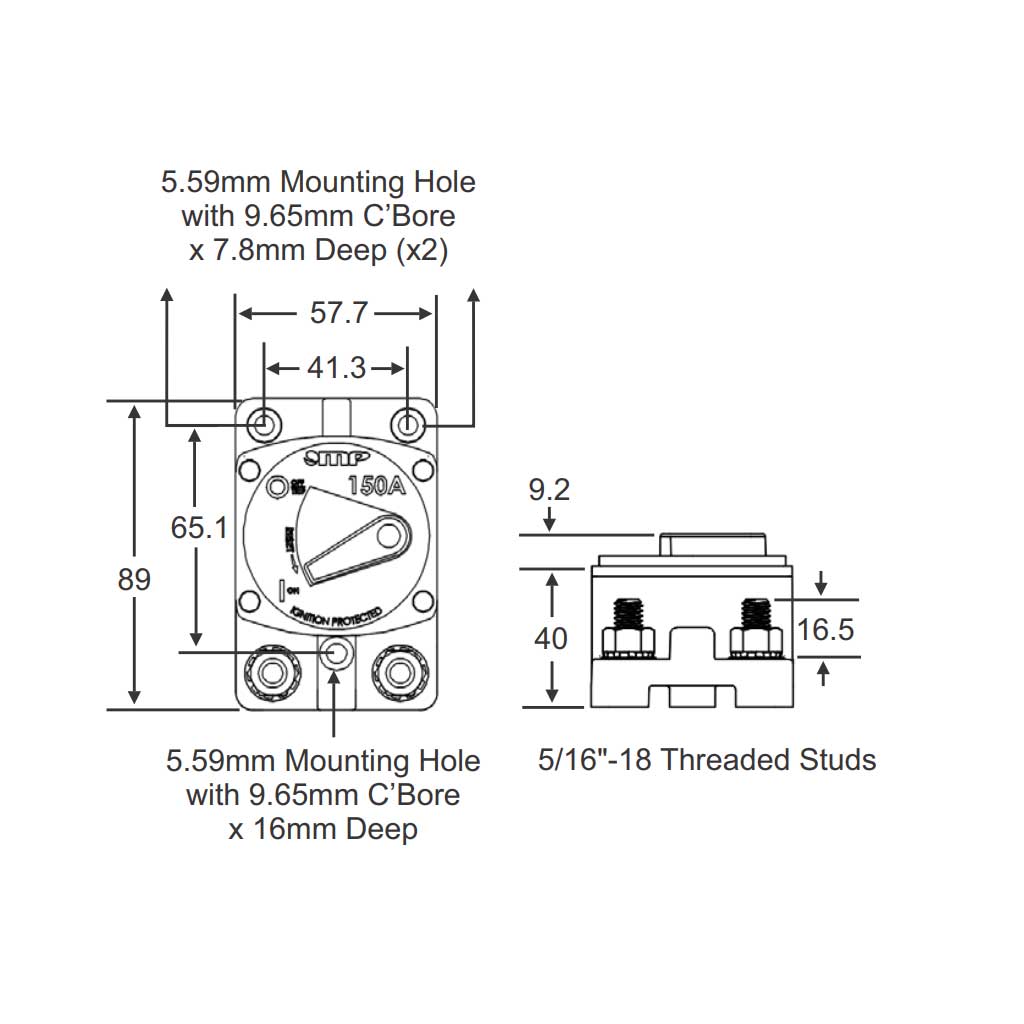 MP Circuit Breaker 250 amp Marine Grade Surface Mount Resettable 12-48VDC